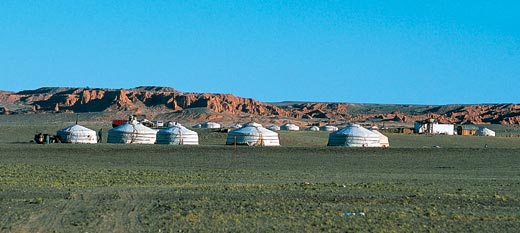 По сей день передвигаться по монгольским дорогам можно только на внедорожной технике и все-таки с проводником, знающим местный язык (монголы в большинстве своем не говорят ни по-русски, ни по-английски). Говоря «дороги», я подразумеваю «направления», то есть беспорядочно пересекающиеся накатанные колеи, каждая из которых в любой момент может прерваться в «чистом поле». Асфальтированных же шоссе в стороне всего два, вернее — полтора. Одно, еще не достроенное, высокопарно называется Дорогой тысячелетия и должно вскоре перерезать страну поперек, а второе ведет от северной границы к Улан-Батору. С точки зрения человека западного, но намотавшего уже несколько сот километров по Монголии, ее столица — просто оазис цивилизации, другое государство, в котором живут другие монголы. Полиция борется с рекламой спиртных напитков на уличных щитах и в общественном транспорте. Вещают музыкальные радиостанции FM-диапазона, и среди них даже одна русскоязычная — «Пульс-радио». А в главном буддийском монастыре страны, Гандане, на заднем дворе под присмотром просветленных и умудренных лам маленькие «ламята» в длинных красных платьях играют в футбол. Но стоит только миновать юрточные окраины…