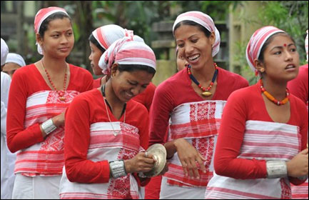 В Ассаме проживают различные народности, у которых есть собственные традиционные наряды, тем не менее, они тоже носят дхоти и мекхла-чадары, используя свои способы драпировки.