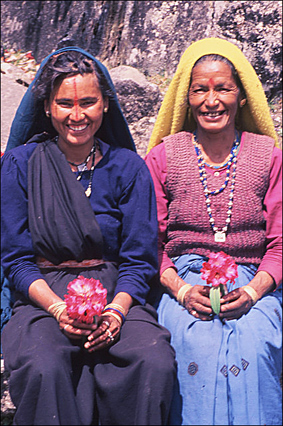 Женщины, голову и плечи которых покрывает длинный шарф орни (орхни, одхни), ходят в длинных шерстяных юбках гхагра (гхагри, гхаграи) и блузках с длинными рукавами, известными как ангра, а также шерстяных жилетах садри. Как правило, в северных территориях одежду из шерсти редко стирают, и ходят в ней до износа.