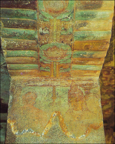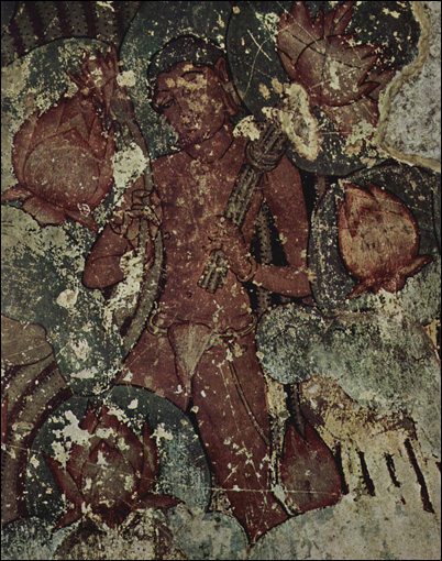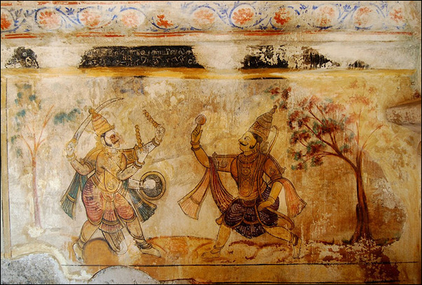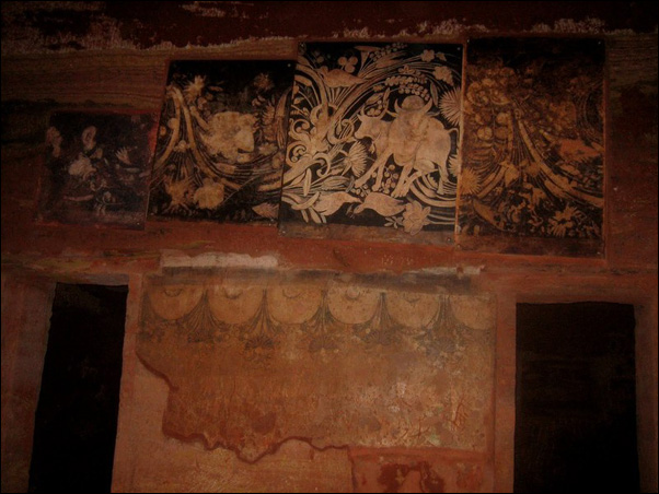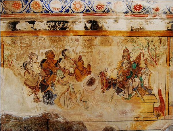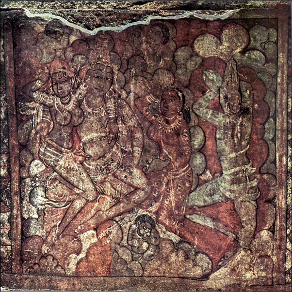 В пещерном храмовом комплексе Эллоры (Ellora) наскальные фрески сохранились в основном в храме Кайласа. Одни из них изображают бога Вишну и его супругу Лакшми, другие — небесных куртизанок апсар, а также риши — святых мудрецов.