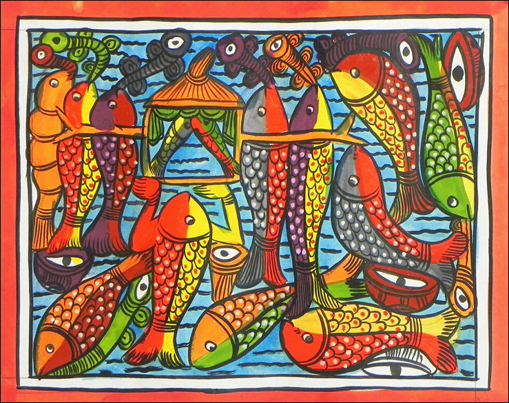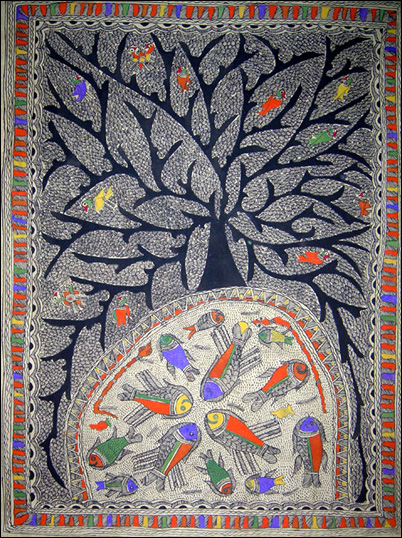 Тематика митхильской живописи вращается вокруг индуистских божеств, небесных светил, Солнца и Луны, священных растений, а также сцен из жизни, связанных с всевозможными торжествами, в основном свадебными.