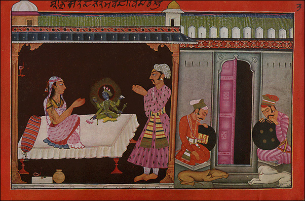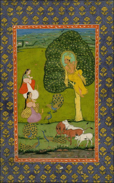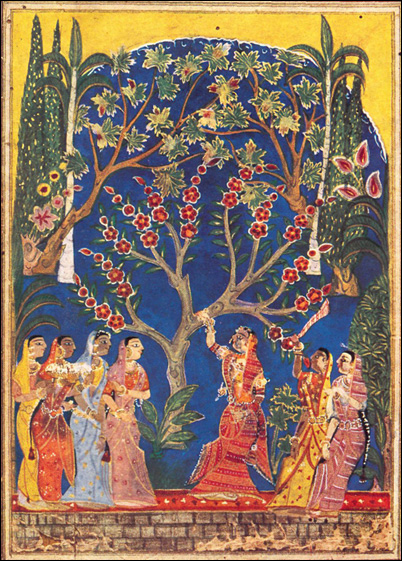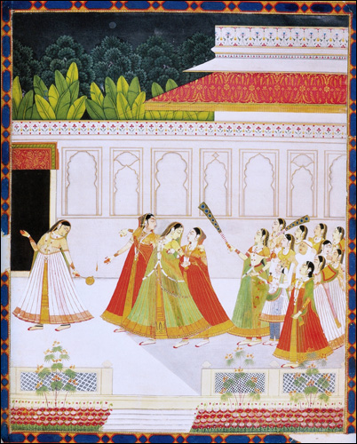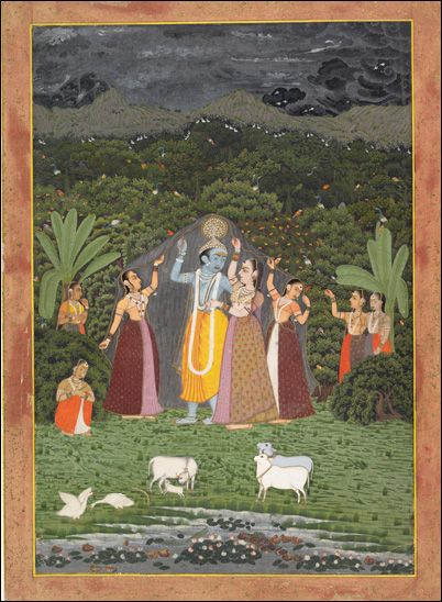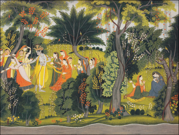 Считается, что живопись Пахари – это отражение раджпутской миниатюры, которая развивалась и процветала в период с XVII по XIX вв. на землях, подвластных раджпутским князьям (области современных штатов Химачал-Прадеш и Джамму и Кашмир).