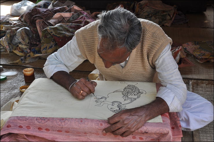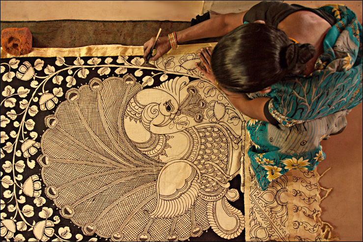 Каламкари (kalamkari) — это особая техника росписи или штамповки по хлопковой ткани или шелку органическими красителями. Этот вид искусства пришел в средние века на территорию Индии из Персии. В переводе с фарси калам — это «перо, палочка для письма», а кари означает «мастерство/искусство». Каламкари подразделяется на два стиля: стиль Шрикалахасти и стиль Мачилипатнам.