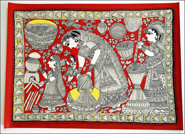 Согласно легенде, роспись мадхубани (madhubani), или как ее еще называют майтхили/митхила, зародилась как искусство во времена правления легендарного правителя страны Видеха, царя Джанаки. Дворец Джанаки, отца принцессы Ситы, находился в городе Митхила. К свадебной церемонии единственной, а потому любимой дочери Ситы и царевича Рамы, царь и распорядился украсить свой дворец. С той-то поры ни одна из свадеб не обходится без украшения внутренних стен домов прекрасной живописью.