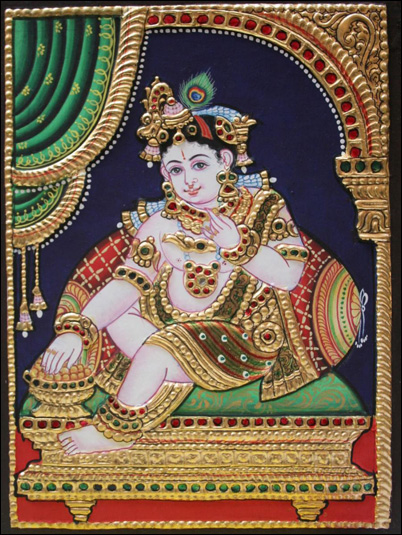 Танджорская живопись — одна из самых популярных форм классической южноиндийской живописи. Плотное заполнение, обилие элементов роскоши, яркие цвета, а также использование инкрустации полудрагоценными камнями, жемчугом и разноцветным стеклом отличают танджорский стиль от других видов живописи. Такая рельефная работа придает картинам трехмерный эффект.