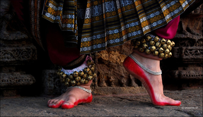 Костюмы танцоров одисси похожи на костюмы бахаратанатьям. Красочные шелковые сари и дхоти, дополненные филигранными украшениями из серебра, называемыми таракаши, ножные колокольчики и броский макияж составляют яркий образ танцора одисси.