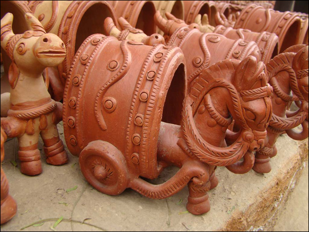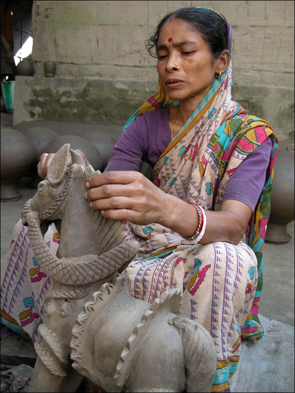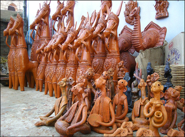 Прекрасные образцы традиционных терракотовых изделий можно найти в городах Западной Бенгалии Муршидабад, Бирбхам, Джайссор, Хугли и Дигха (Murshidabad, Birbhaum, Jessore, Hooghly, Digha). В малоимущих семьях гончаров кумбкар (khumbkar) женщины часто помогают своим мужьям, выполняя не сложную работу. Изготавливая маленькие горшочки, крышки для них, тарелки, кружки, кукол, а также фигурки божеств, они стараются пополнить семейный бюджет дополнительными доходами.