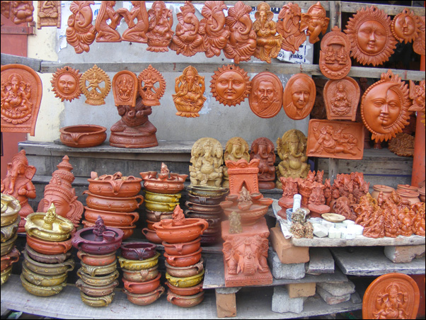 Путешествие по Индии оставляет много ярких воспоминаний. Одним из них является посещение базаров, где можно найти все, что душе угодно. Обычным явлением для индийских базаров является огромное многообразие керамических изделий, которые, несомненно, станут отличными сувенирами из этой удивительной и загадочной страны. Каждый регион Индии знаменит своим особым стилем гончарных изделий, однако всех объединяет простота форм и незатейливость рисунка. Из глины здесь изготавливают горшки, кувшины, чашки, лампы, лампадки, игрушки, копилки, вазы для цветов, фигуры богов и богинь и множество других предметов.