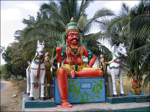 Традиционно в качестве оберега у входа в каждую тамильскую деревню устанавливают огромные статуи терракотовых лошадей, которые согласно местной легенде, принадлежат Айянару (Ayyanaar) — тамильскому божеству, защитнику деревни. Культ Айянара распространен в поселениях всего Тамил-Наду, а также на Шри-Ланке. Его священнослужители не брахманы, а местные жрецы, принадлежащие к касте гончаров. Айянар с широко раскрытыми глазами, огромными усами и большими зубами восседает в окружении своих воинов и лошадей у входа в селение. Эти огромные, почти шести метровой высоты статуи, лепят из глины, песка и соломы.