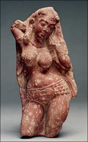 В то время, как гандхарская школа искусства резьбы по камню развиваясь, стремительно продвигалась на юг Индийского субконтинента, матхурская школа укрепляла свои позиции на севере страны. Пик развития матхурского искусства совпал с правлением императора Канишки (кушанского царя) и его приемников. Скульптуры матхурской школы развивались под влиянием коренных индийских традиций, подчеркивающих пышные телесные формы, сладострастные (чувственные) движения и минимизирующих одежду. В данном регионе была распространена как индуистская, буддистская, так и джайнская тематика. Скульптуры вырезались из красного песчаника. Матхурская скульптура, отражая местный колорит, передавала особое представление о женской красоте: округлые формы, широкие бедра и тонкая изящная талия.