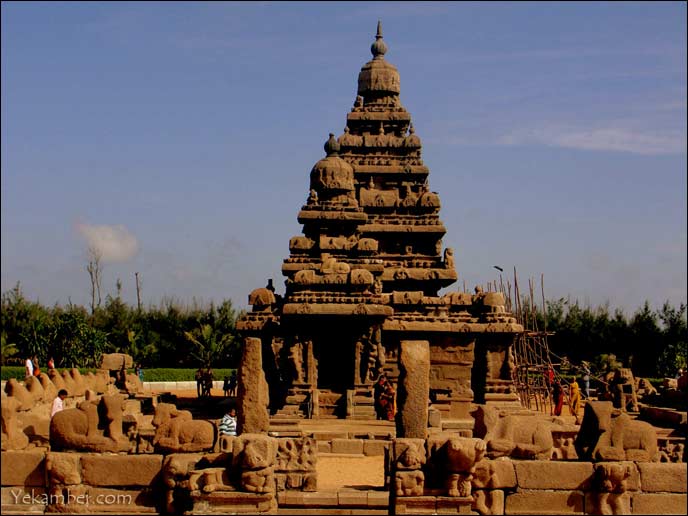 Интенсивное развитие скульптурного искусства южной Индии началось при правлении и под покровительством династии Паллавов (IV-IX вв). Некоторые из самых популярных резных храмов были построены во времена их царствования. Ярким примером тому могут служить Прибрежные Храмы (Shore Temples) в Мамаллапурам (Махабалипурам — вторая столица и портовый город династии Паллавов). На сегодняшний день сохранился лишь один из семи храмов, другие были поглощены океаном.