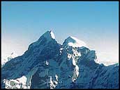 Священная гора Гаури (7148 м), известная также как Гаури Шанкар, Церингма, Джомо Церингма. Почитается как индуистами, так и буддистами. Гаури — это гора с двумя вершинами. Шанкар — её северная вершина — олицетворяет Шиву, а южная вершина — его супругу, Богиню Гаури. "Затем пусть человек, исполненный веры, придя к прославленной во вселенной горе Гаури, Великой Богине, придёт к Станакундам. Кто там, радея о почитании богов и предков, совершит омовение, тот обретёт плод жертвоприношения коня и пойдёт в мир Шакры." (Махабхарата, Араньякапарва, Сказание о паломничестве к тиртхам, гл. 82) |